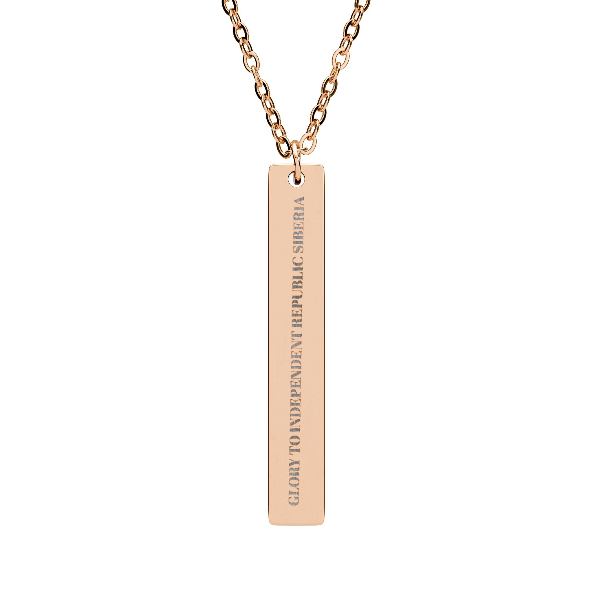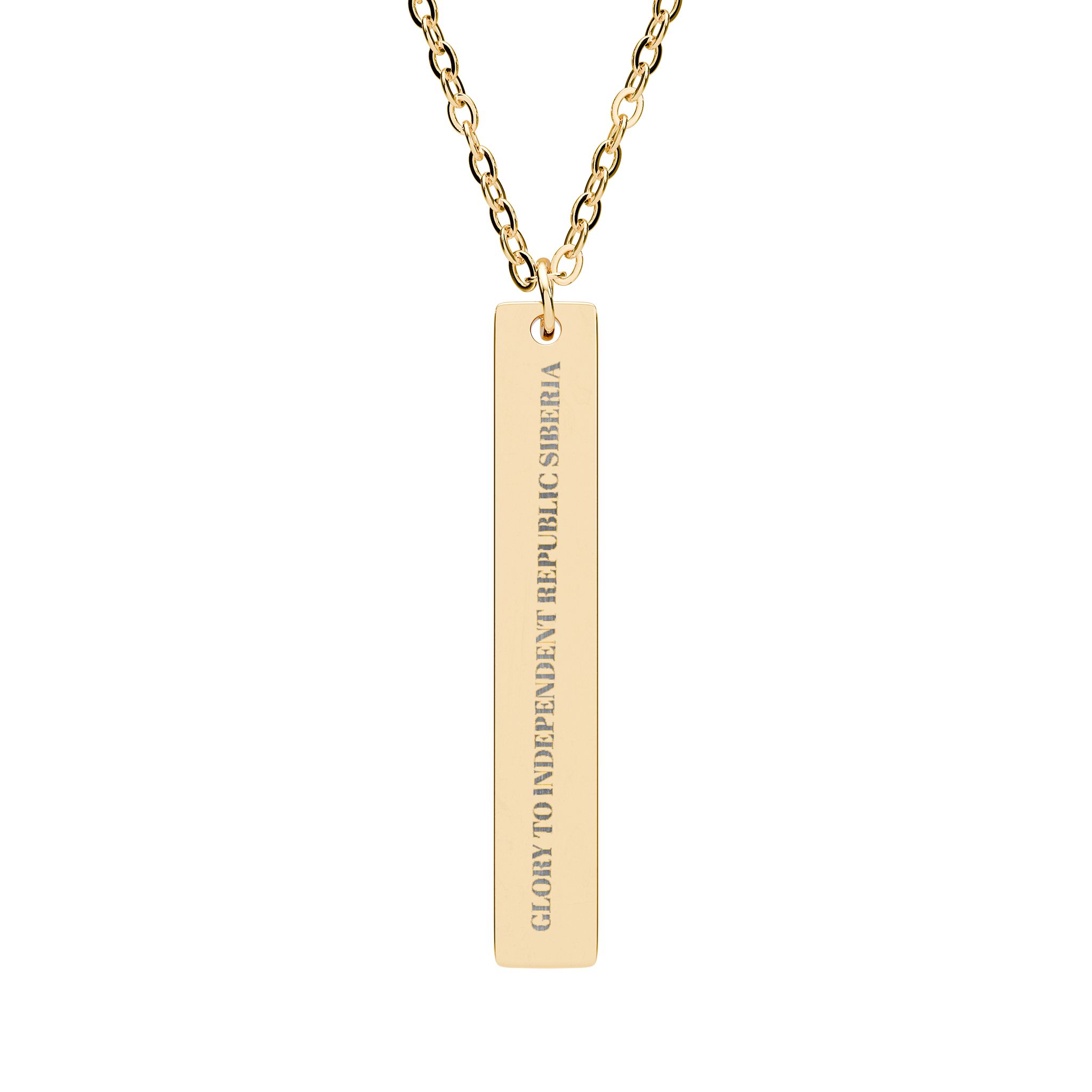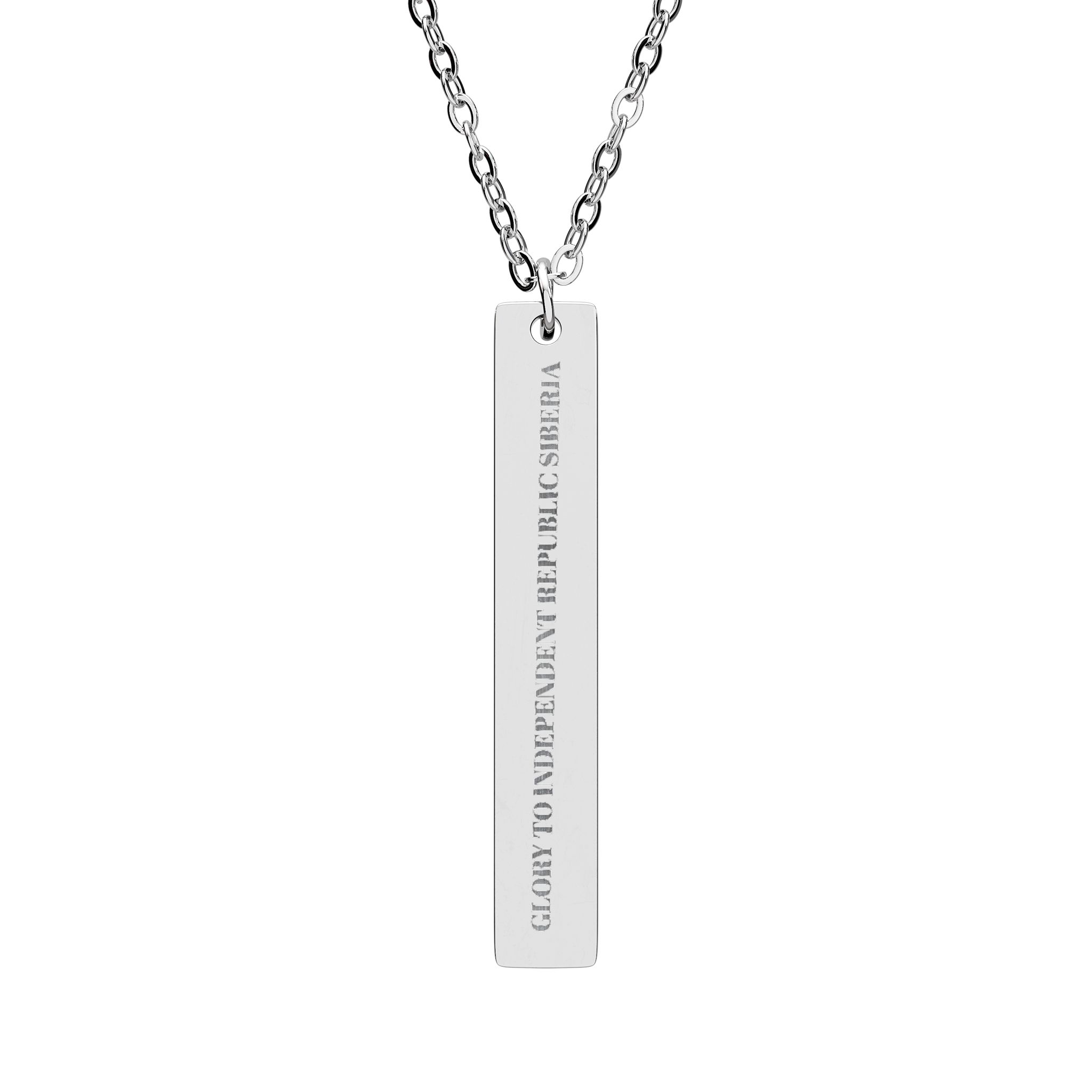 A slim vertical bar necklace with crisp laser-engraved lettering, designed to be worn every day as a low-profile keepsake. The pendant’s clean lines and polished finish give it a modern, minimalist feel — it slides easily under collars or layers, then catches light when you move. Made from surgical-grade 316L stainless steel with PVD color options, the engraving is permanent and won’t flake or fade. Lightweight and hypoallergenic, it sits comfortably against the skin for long wear and holds up to daily life without tarnishing. Whether tucked into a casual tee or paired with a blazer, this bar necklace reads like a quiet, personal statement.